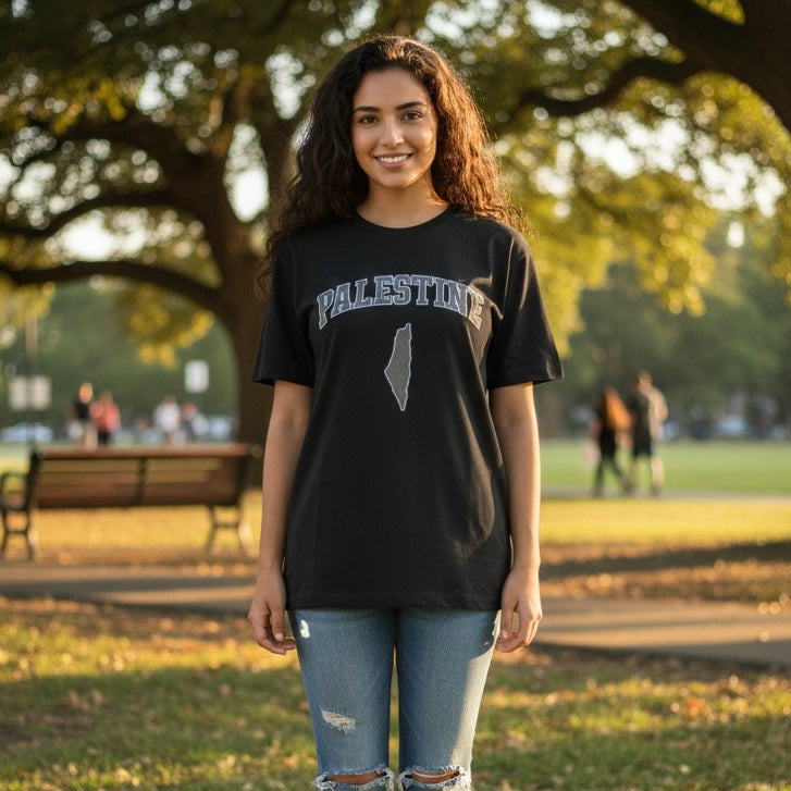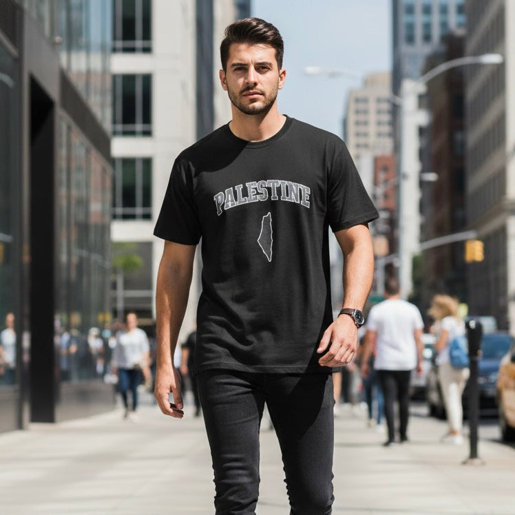 Crafted with top quality ultra soft cotton, this shirt is the perfect blend of comfort and expression. The printed Palestine Varsity design offers a simplistic yet bold illustration of solidarity to Palestine.