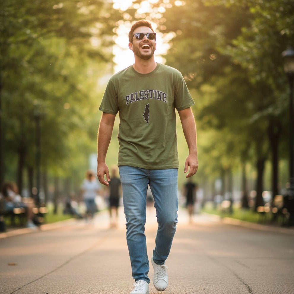 Crafted with top quality ultra soft cotton, this shirt is the perfect blend of comfort and expression. The printed Palestine Varsity design offers a simplistic yet bold illustration of solidarity to Palestine.